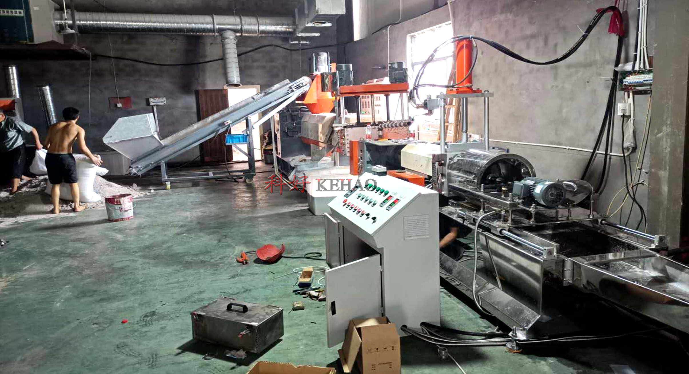 新疆客戶pe水環(huán)切造粒機組安裝成功