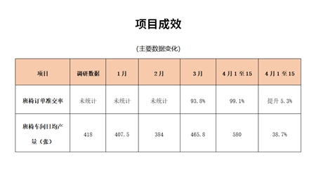 (1)每天在生產協調會上關注班椅車間產出、訂單準交率等核心數據及原因分析