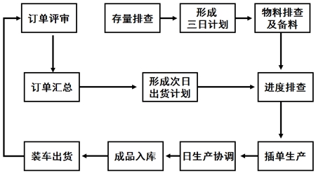 在頻繁總結的基礎上,對核心數據和關鍵動作進行分析,組織管理人員一起總結,確定了適應公司產品生產的短周期生產計劃模式(見下圖)