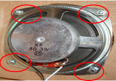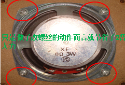 工藝缺陷點:在加工喇叭時要穿4個螺絲到喇叭板再放喇叭,然后再穿4個墊片及擰4個螺母,最后固定螺母,工序復雜,而且必須要用2人操作。 |