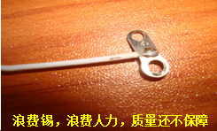 工藝改進方法:直接改訂制帶葫蘆的線材,而且供應商使用的是機械加工,增加的成本就是錫的成本,我們還可以省下一個人。 |