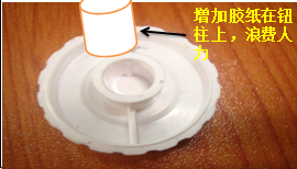 工藝缺陷點:生產過程中發現調諧鈕有虛位,PVC調到盡頭時調諧鈕還可調動,原因是調諧鈕骨位有偏小,調諧連接柱槽位偏大0.2mm造成。車間的解決辦法是增加人力并貼膠紙在調諧鈕上。